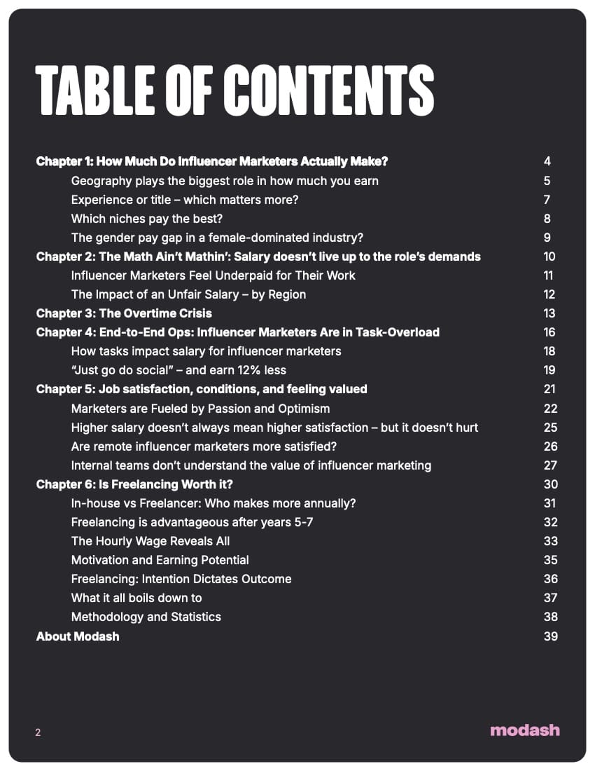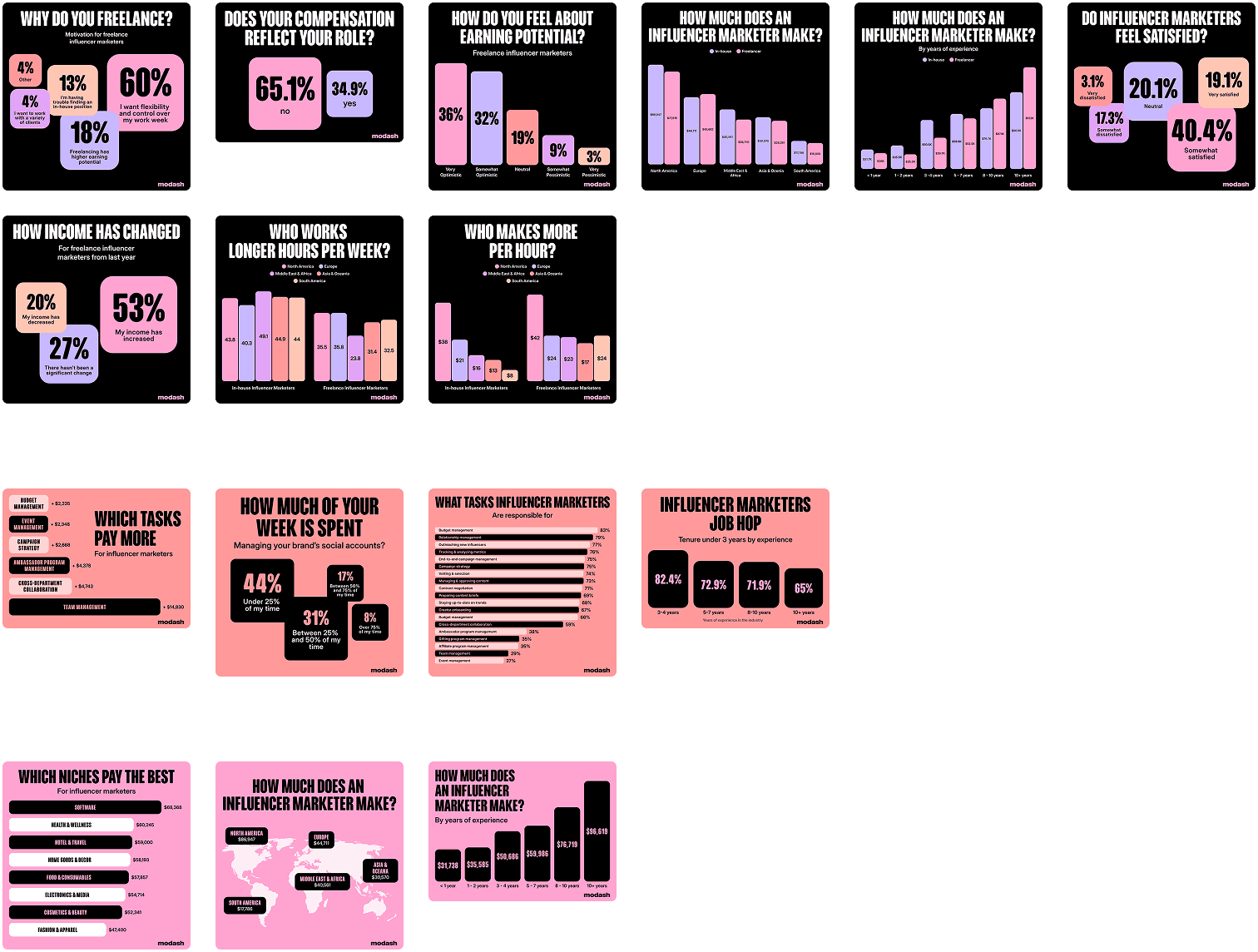 I was responsible for designing the 39-page report and 32 graphs for Modash blog articles and social media posts.