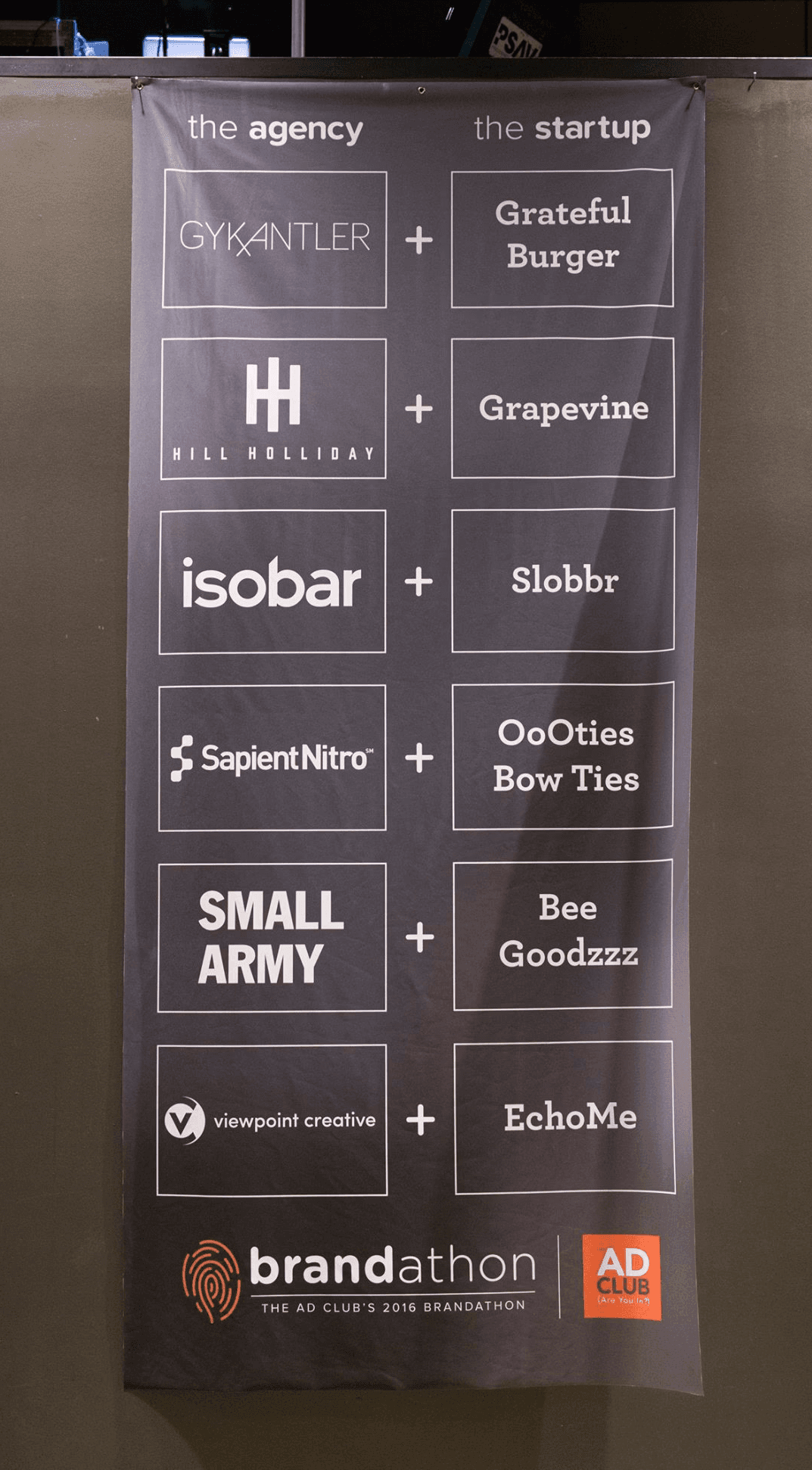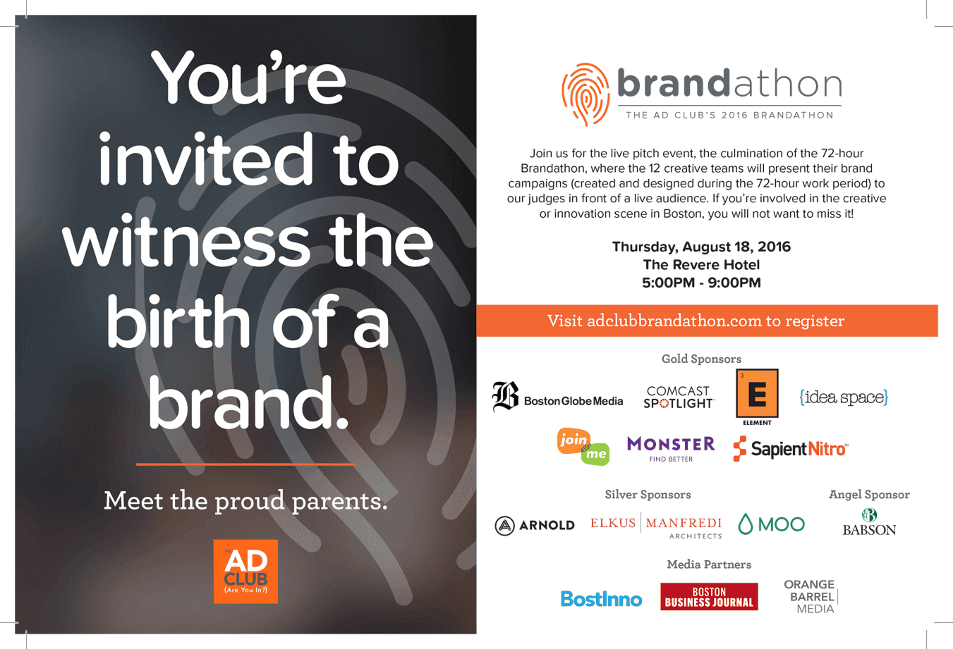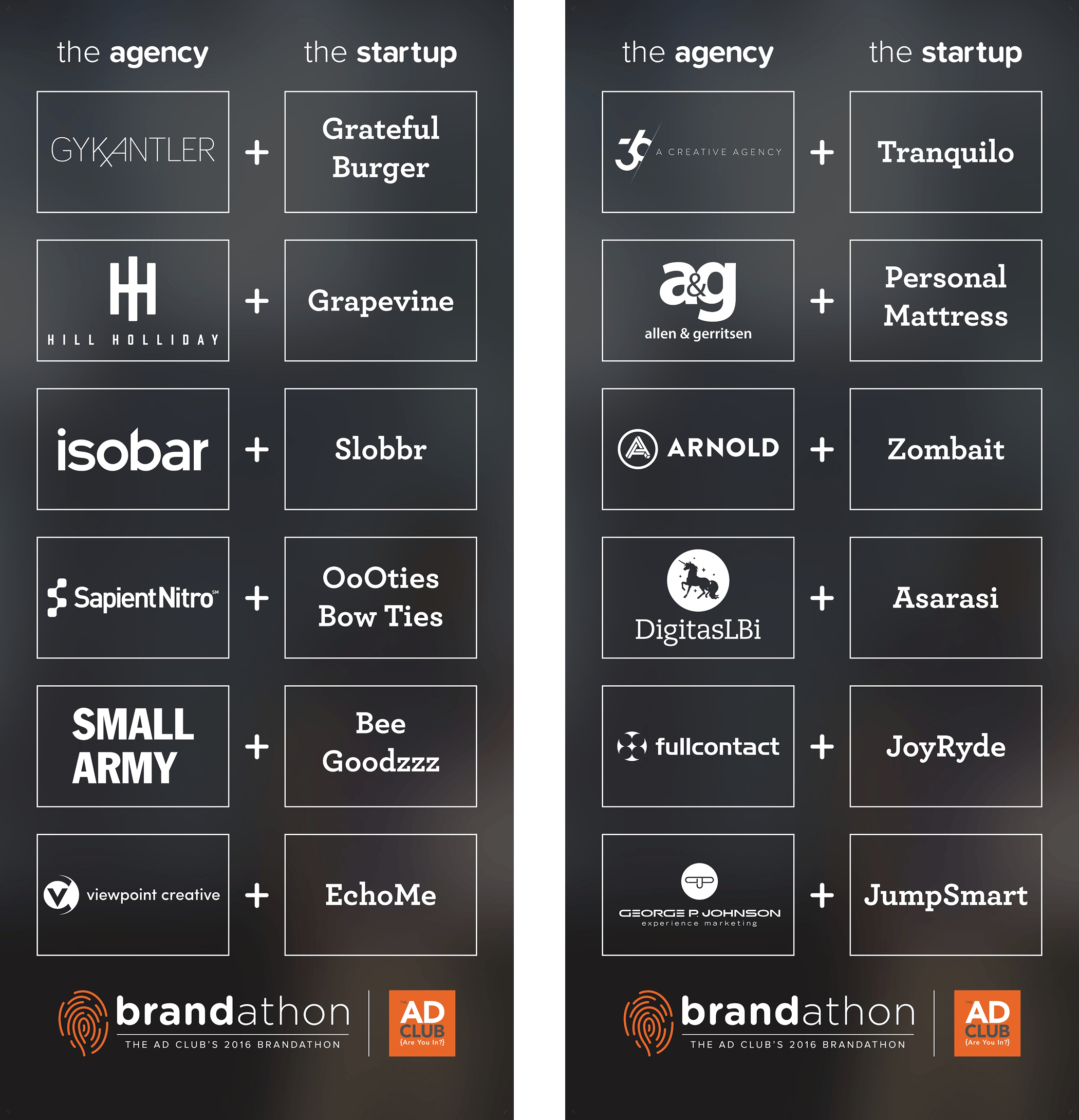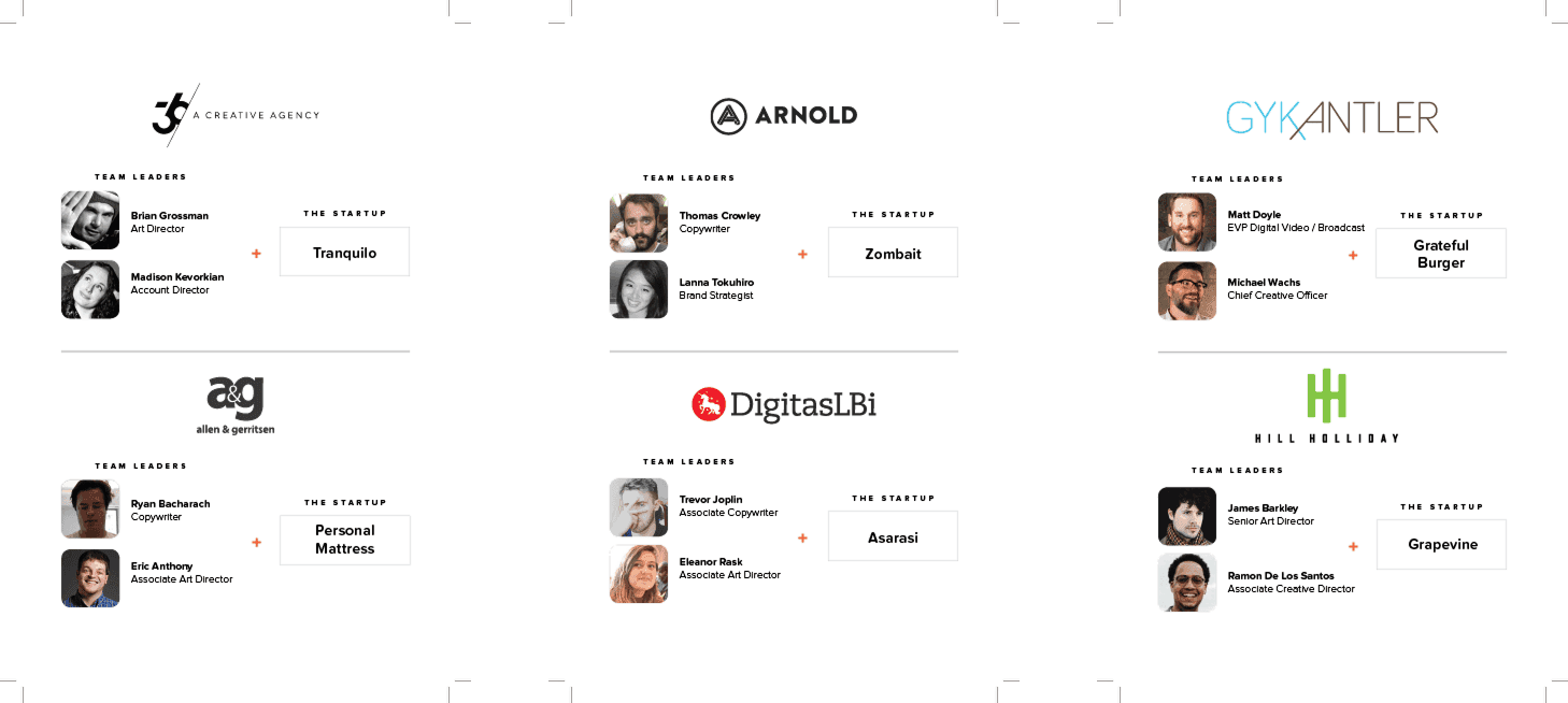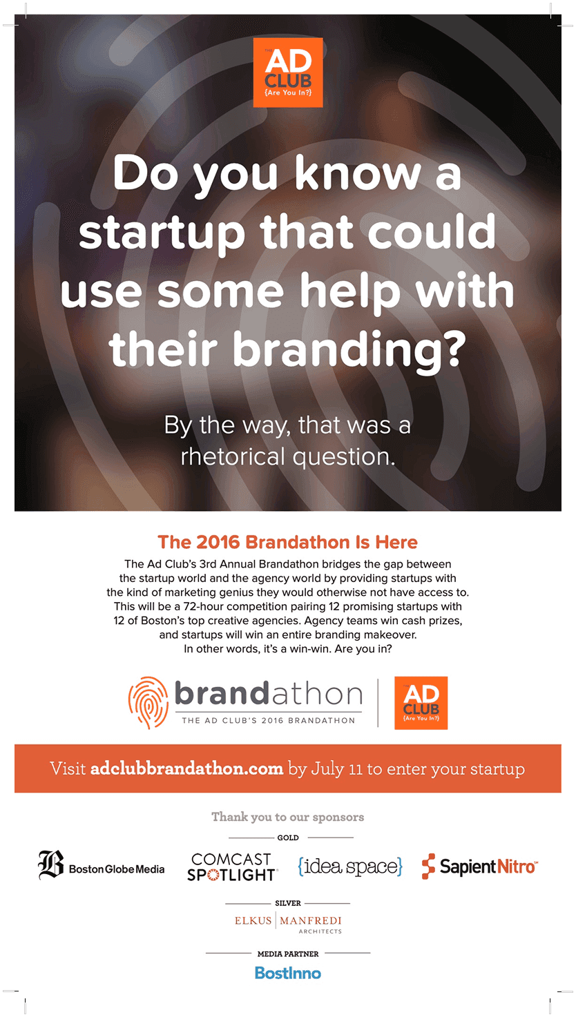 The Brandathon is a live-pitch event for small New England startups, where 12 creative teams present their brand campaigns (created and designed during the 72-hour work period) to judges and a live audience.