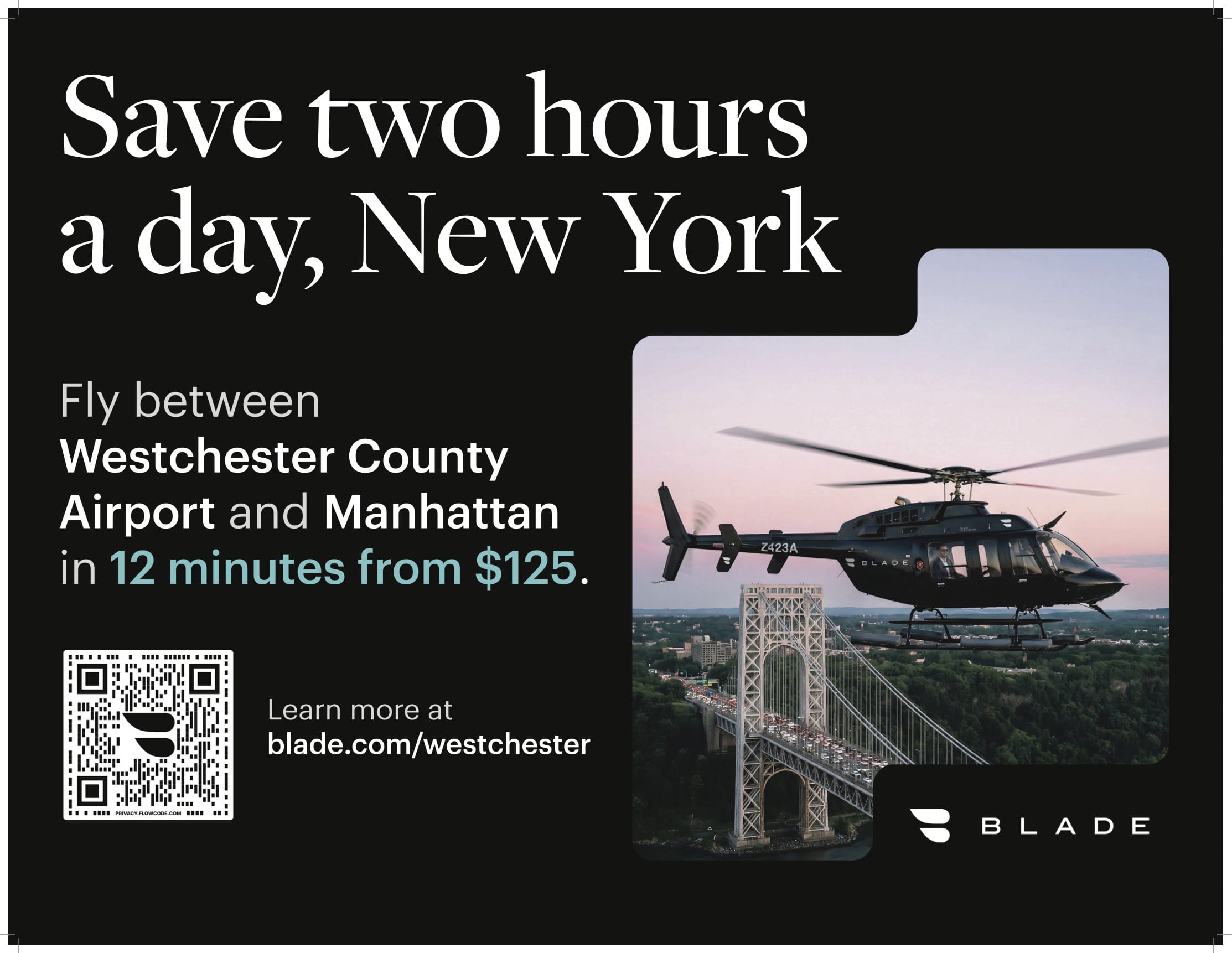 BLADE is an urban air mobility platform that provides helicopter, seaplane, and jet services as a cost-effective alternative to driving or taking the train.