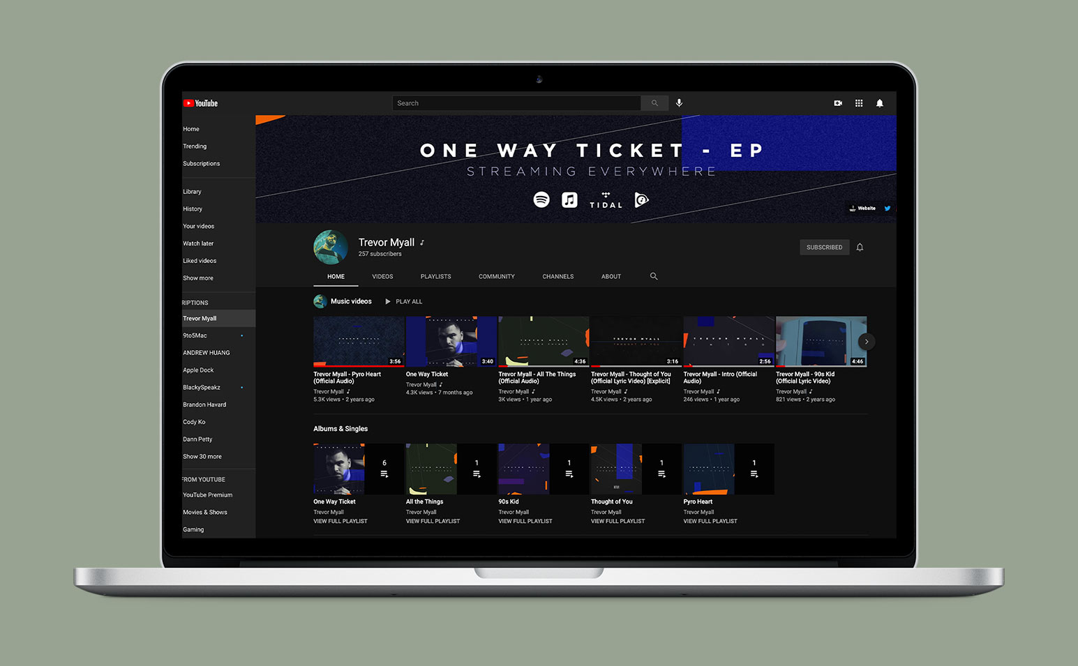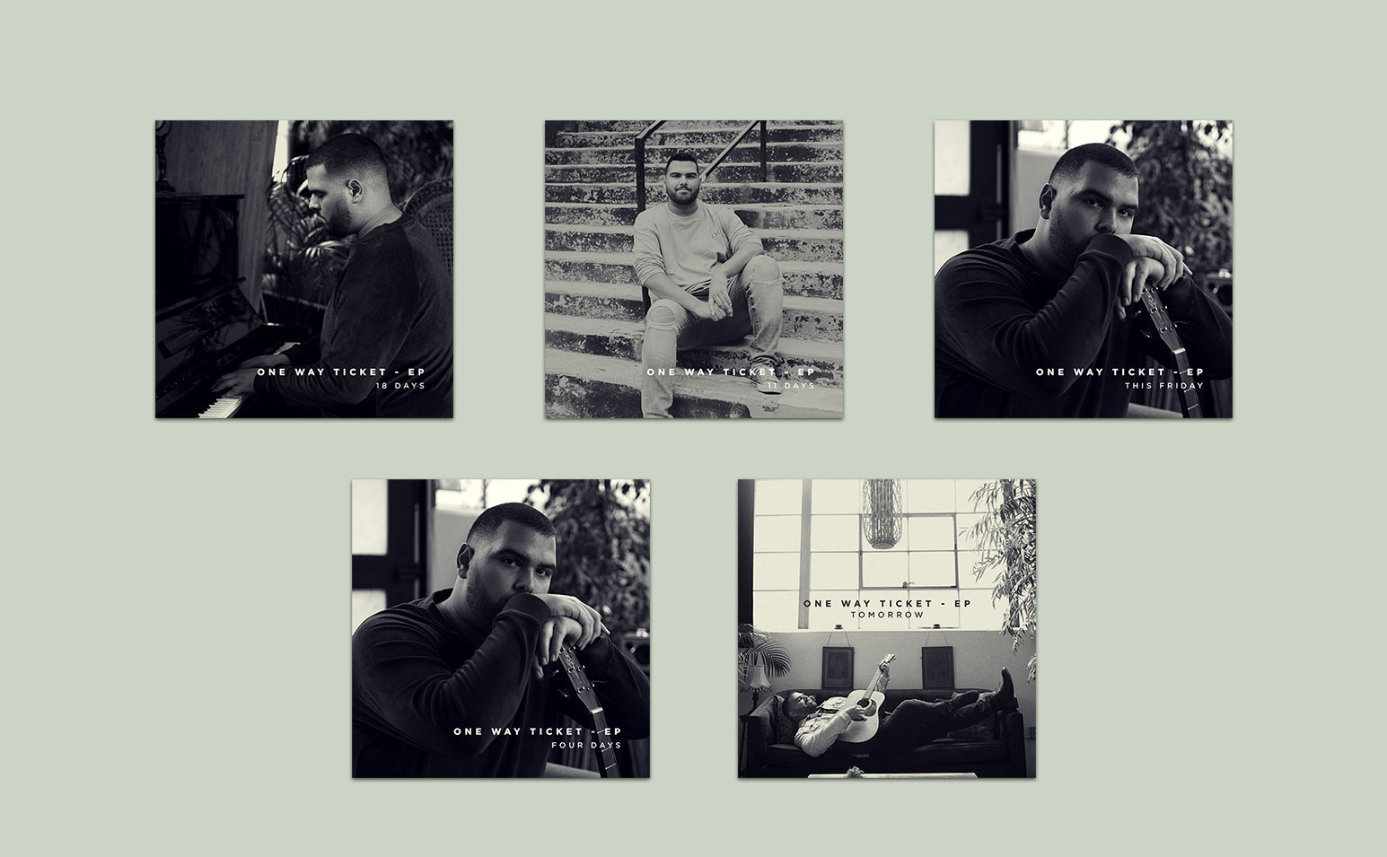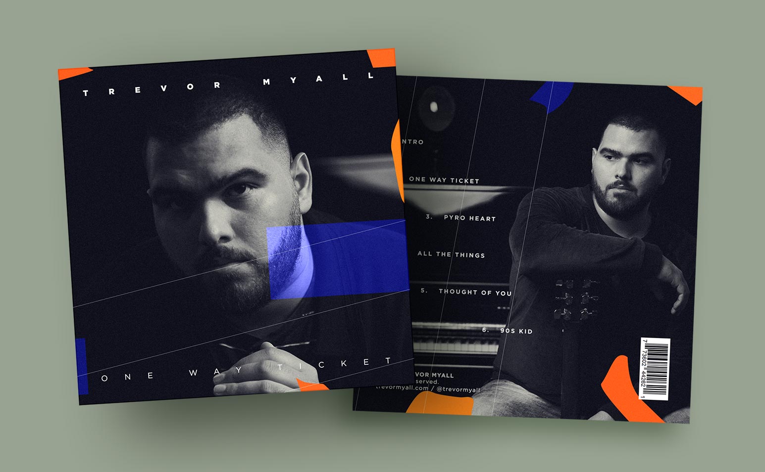 Trevor Myall is a singer-songwriter and producer based in Los Angeles and was looking to release his debut project, 'One Way Ticket,' in 2018. I created his EP Cover (front and back) and single covers. The goal was to ensure that all covers were cohesive and looked like they were part of the same project.